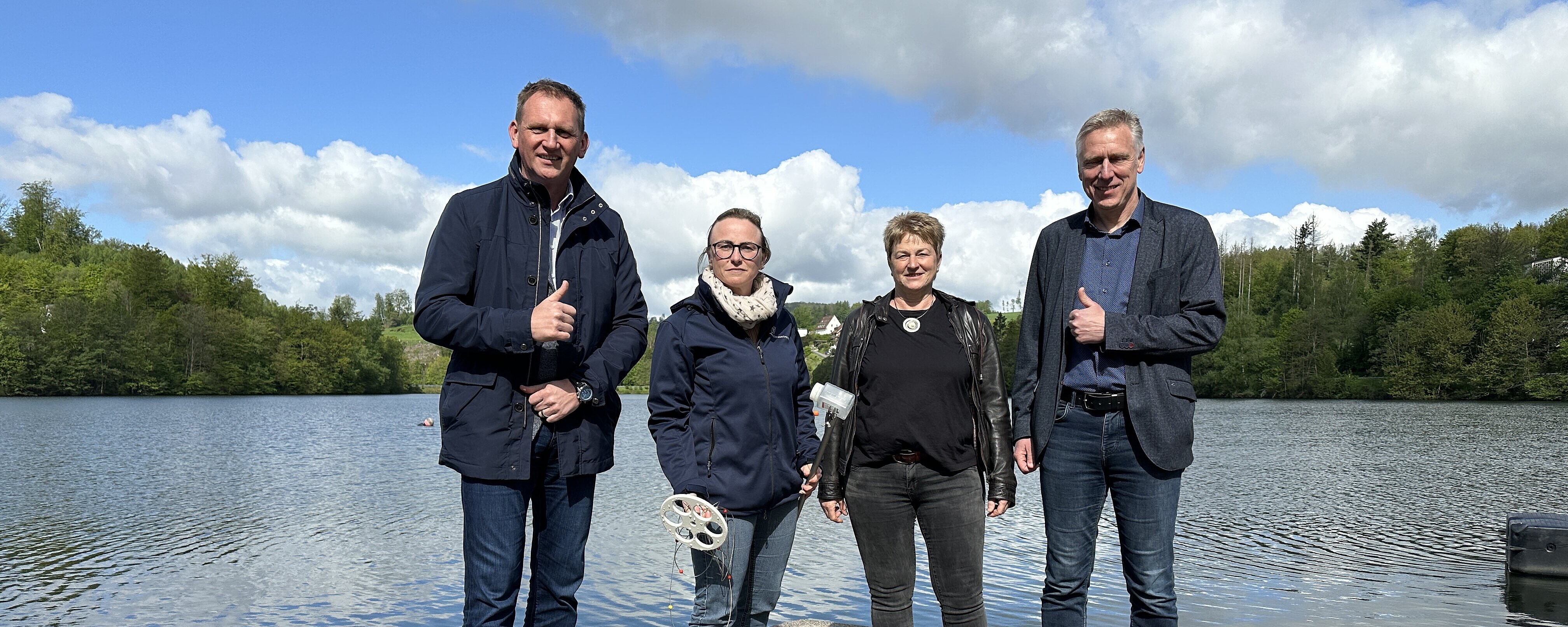 Das Naturfreibad Bruch überzeugt erneut, wie auch in den Vorjahren, mit ausgezeichneter Badewasserqualität! Harald Kawczyk (Betriebsleiter der Stadtwerke Gummersbach), Angela Weber (Sachgebietsleiterin Trinkwasser und Umwelthygiene, Oberbergischer Kreis), Dr. Birgit Will (stellv. Amtsleiterin des Gesundheitsamtes des Oberbergischen Kreises) und Dr. Uwe Moshage (Vorstand des Aggerverbandes) waren bei der Präsentation der Qualitätskontrolle im Naturfreibad Bruch dabei.